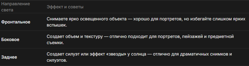 4. Учитывайте направление света